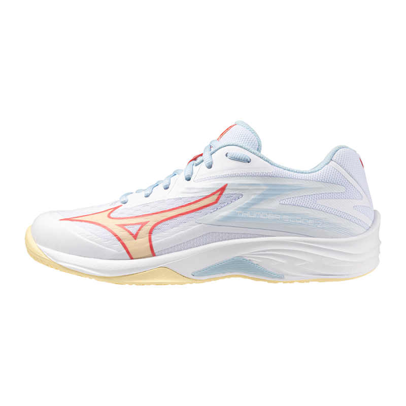 As Mizuno Thunder Blade Z W são sapatilhas indoor que combinam leveza, conforto e estabilidade. O design elegante aliado a uma construção robusta, perfeita para jogar andebol, voleibol outros desportos de pavilhão. A entressola em EVA proporciona amortecimento eficiente, enquanto a sola de borracha antiderrapante garante máxima tração nos movimentos mais exigentes. Um modelo versátil para atletas que procuram rendimento e estilo em campo.